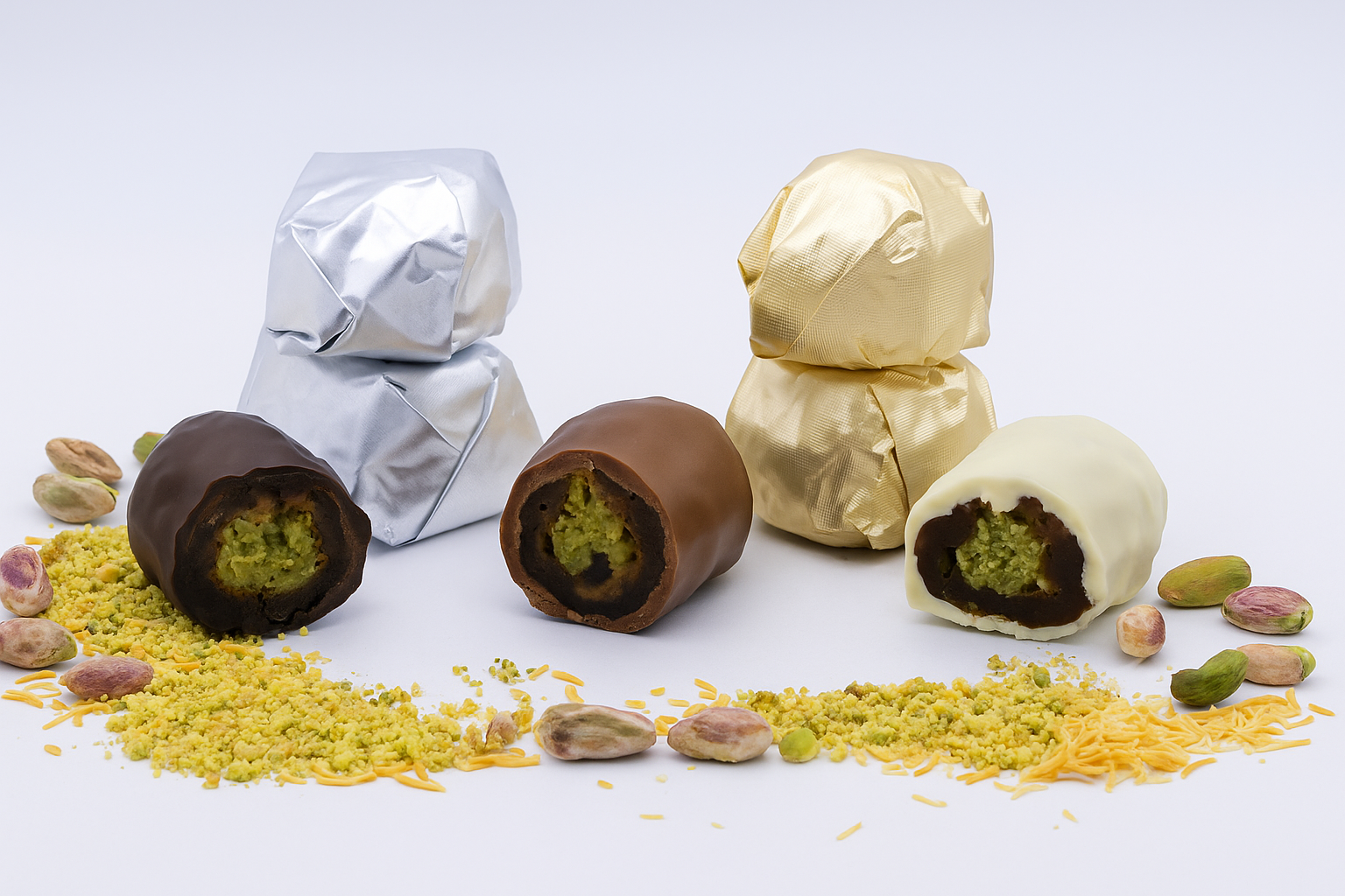 Irresistible bars, date delights, and strawberry creations, handcrafted with pistachio, kunafeh, and love.